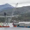 The HLV Uglen lifted and installed all together 30 bridge elements which were lifted direct from the transportation ship Korex SBM 2 which again transported the bridge elements from China to Narvik. The transportation ship was anchored in the fjord same as HLV Uglen.