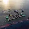 Ugland Construction AS delivers marine services to Transmares for construction platform, transport by barge, with tug and float-off unloading.